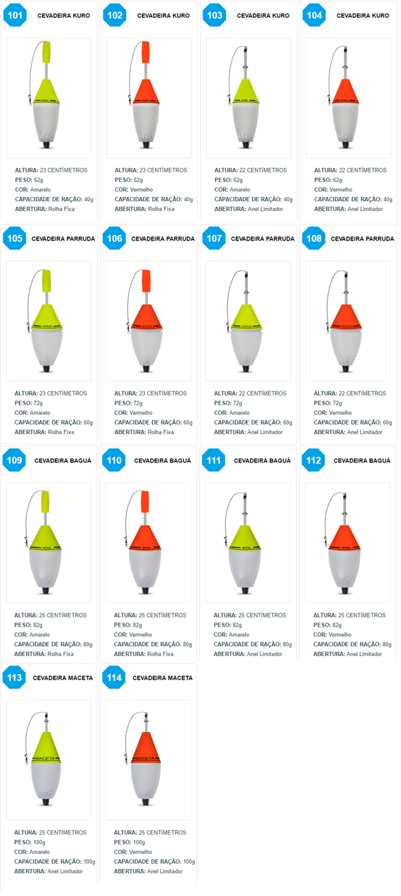 Indicada para a pesca de superfície, com abastecimento de ração tipo grão entre 6 e 12mm.